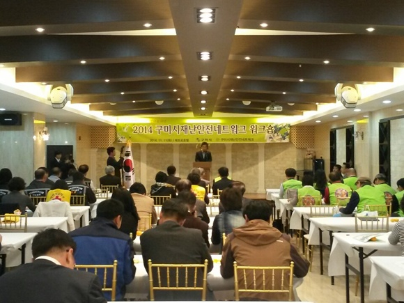구미시(시장 남유진)는 11월 11일 메트로 호텔 연회장에서 안전생활실천시민연합 구미지부, 해병대구미시전우회, 아마추어무선연맹 구미지부 등 10개 단체 120명이 참석한 가운데 구미시재난안전네트워크(상임대표 김중천) 재난대응역량강화 워크숍을 개최했다.