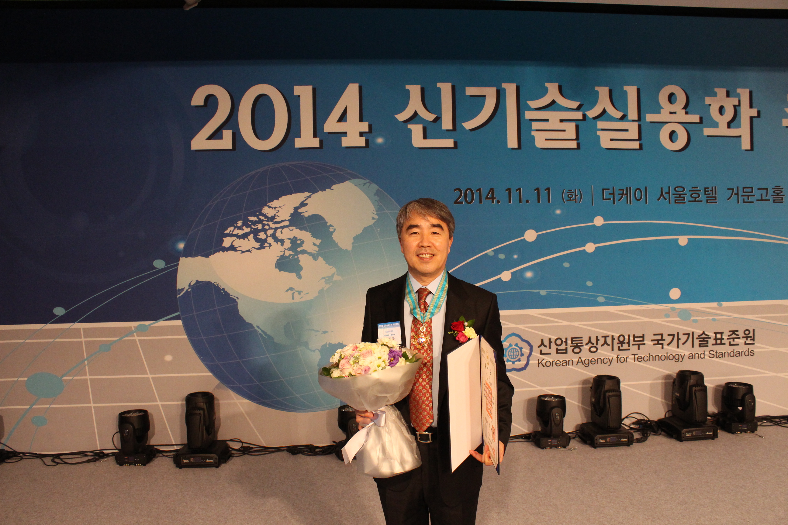 산업통상자원부 국가기술표준원이 11월 11일 개최한 '2014 신기술 실용화 촉진대회'에서 (주)프로템 황중국 대표가 은탑산업훈장의 영예를 안았다.