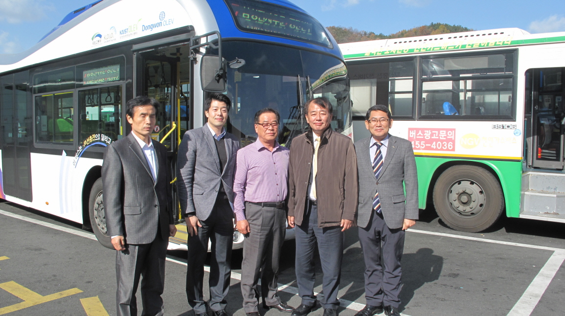 김 부회장은 구미시 경제통상국 황종철 국장과 버스회사 관계자로부터 전기버스 사업 전반에 대한 설명을 청취한 후, 전기버스를 시승했다.
