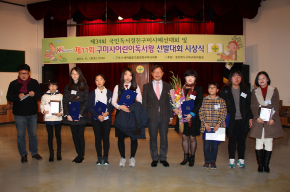 구미시(시장 남유진)는 11월 15일 구미시립중앙도서관 강당에서 시민150여명이 참석한 가운데 '제11회 구미시 어린이 독서왕 및 대통령기 제34회 국민 독서경진 구미시 예선대회 시상식'을 개최했다.