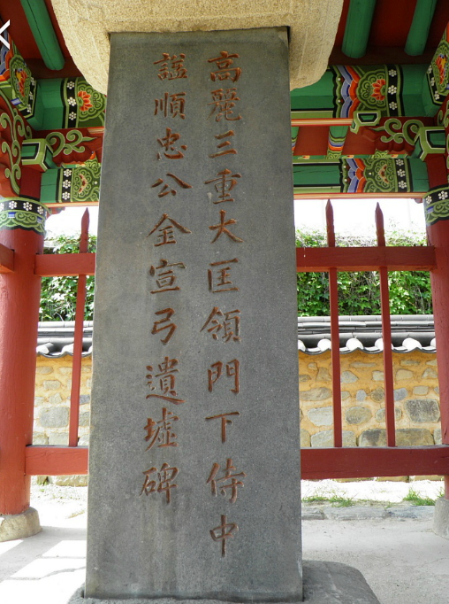 이 비석은 선산(일선)김씨의 시조인 김선궁(金善弓)의 신도비와 유허비이다.