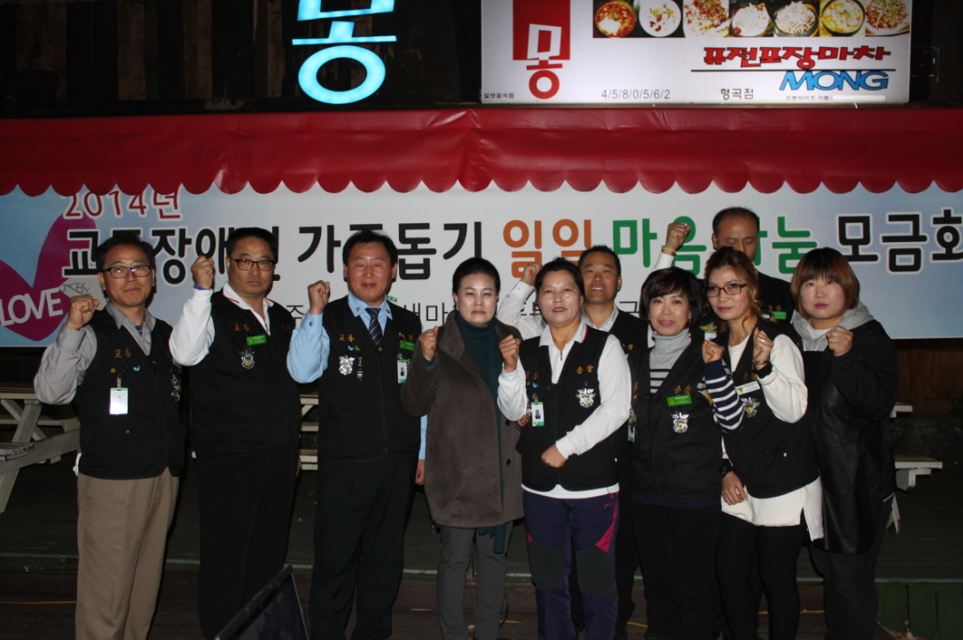 '2014년 교통장애인 가족돕기 일일 마음나눔 모금회'가 11월 20일 새마을교통봉사대 구미시지대(지대장 이상조) 주최, 주관으로 지역 음식점에서 성황리에 개최됐다.