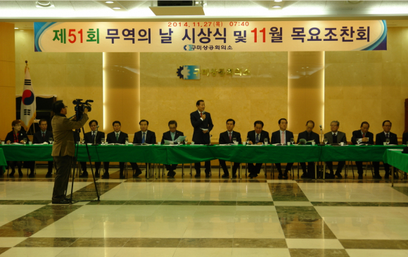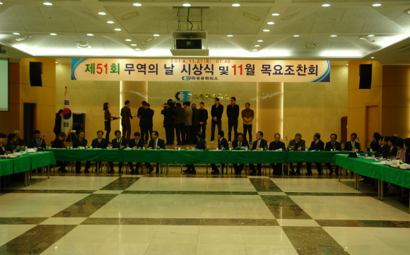 구미상공회의소(회장 김용창)는 11월 27일 2층 대강당에서 남유진 구미시장, 이강덕 포항시장, 권오덕 구미경찰서장, 한덕기 구미세무서장 등 각 기관단체 및 회원사 대표 임직원 200여명이 참석한 가운데 '제51회 무역의 날 시상식 및 11월 목요조찬회'를 개최했다.