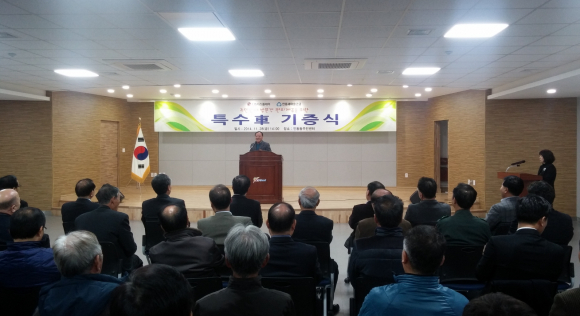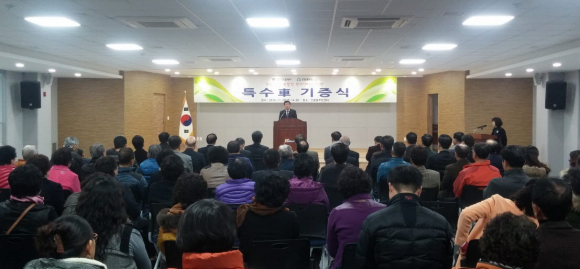 인동동(동장 박세범)은 11월 28일 인동동주민센터 대강당에서 기탁자 및 시ㆍ도의원, 기관단체장, 주민 등 100여명이 참석한 가운데 특수차 기증식을 개최했다.