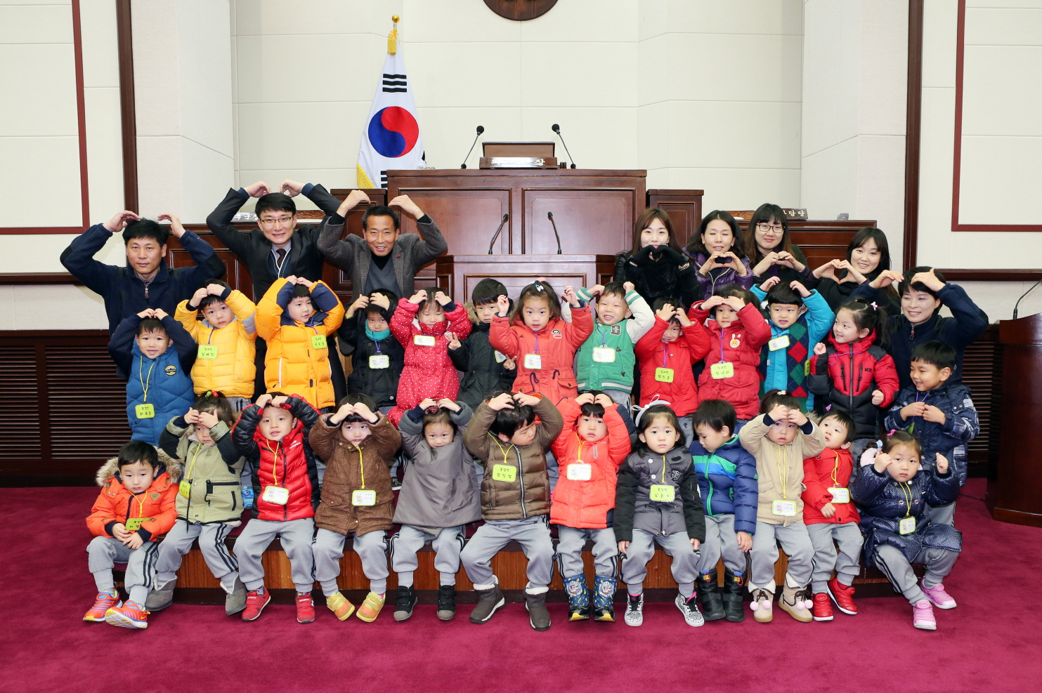 구미시 상모신세계 어린이집 어린이 25여명이 인솔교사(김윤경)와 함께 12월2일 오전에 구미시의회를 견학했다.