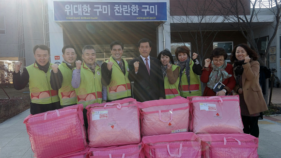 박세범 인동동장은 "나눔의 즐거움을 통해 기부문화가 발전할 수 있도록 앞장 서 실천해 주신 사랑의열매나눔봉사단과 지엔크린에 진심으로 감사하다"며, "추운 겨울 따뜻해지는 훈훈한 소식을 자주 전할 수 있도록 노력하겠다"고 말했다. |