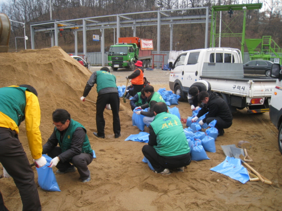 공단2동(동장 고차진)은 12월 3일 새마을지도자협의회 회원 10여명이 겨울철 제설준비를 위한 빙방사(모래주머니) 만들기 및 배치 작업을 실시했다.