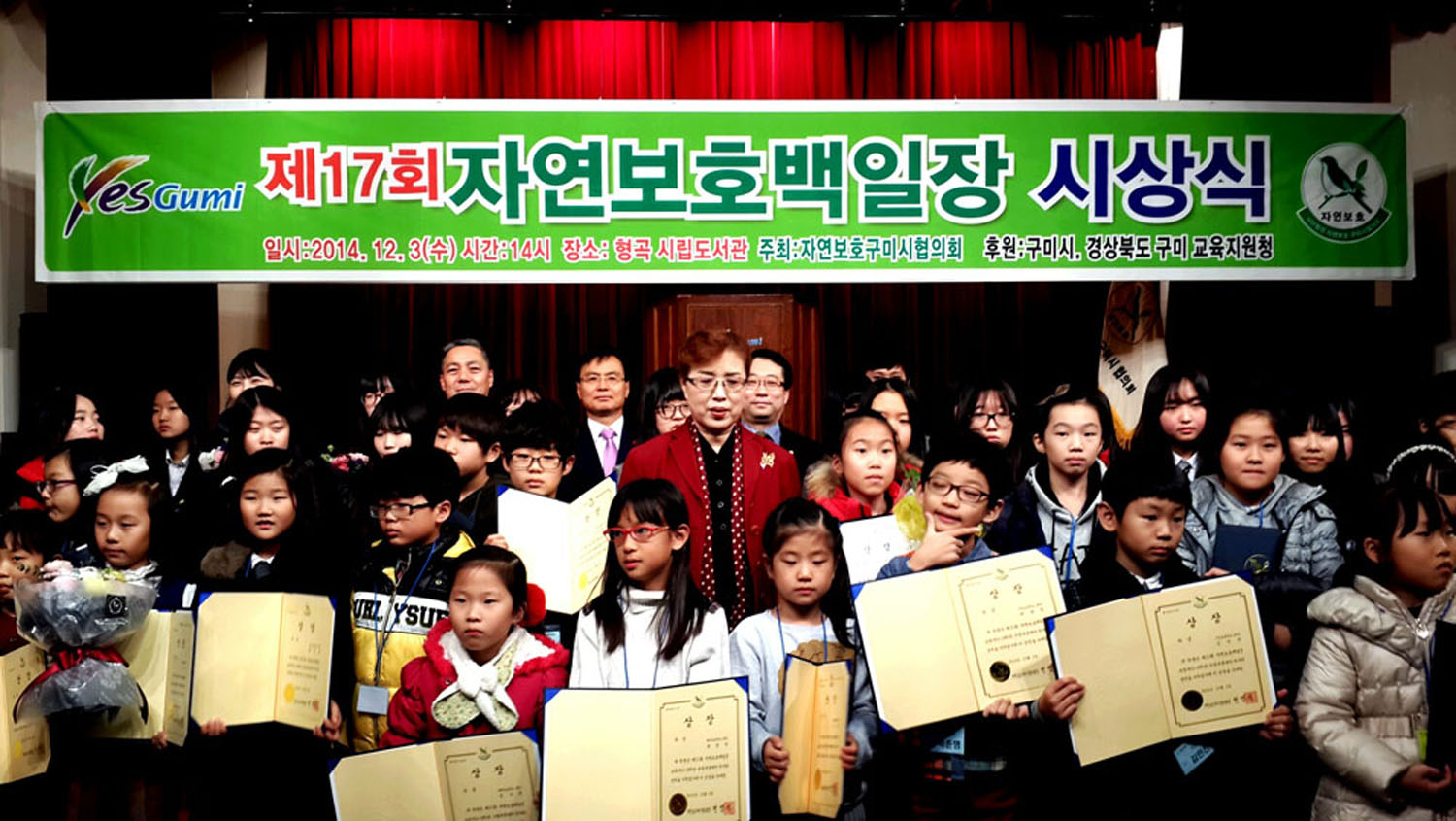 구미시(시장 남유진)와 자연보호구미시협의회(회장 천명석)는 제17회 자연보호백일장 시상식을 수상자 및 가족, 자연보호구미시협의회 회원 등 150여명이 참석한 가운데 12월 3일 시립중앙도서관 강당에서 개최했다.