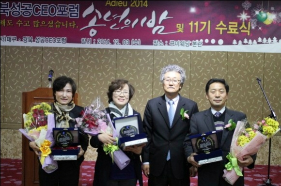 중소기업의 네트워크 활성화에 앞장서고 있는 (사)대구ㆍ경북 성공CEO포럼(회장 최희식)이 주최, 12월 3일 구미웨딩 본관에서 각 기관장 및 기업인 등 회원100여명이 참석한 가운데 11기 수료식 및 송년에 밤이 성대하게 개최됐다.