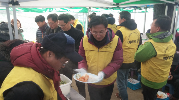 이날, 트윈스 클럽 회원들은 KTX 동대구역 네거리 노천가로수길에서 노숙인 및 독거노인들을 위해 직접 식사를 준비하는 한편, 양말과 침낭, 떡, 과일 등 정성껏 마련한 선물들을 함께 전하며 이웃 사랑을 실천했다.