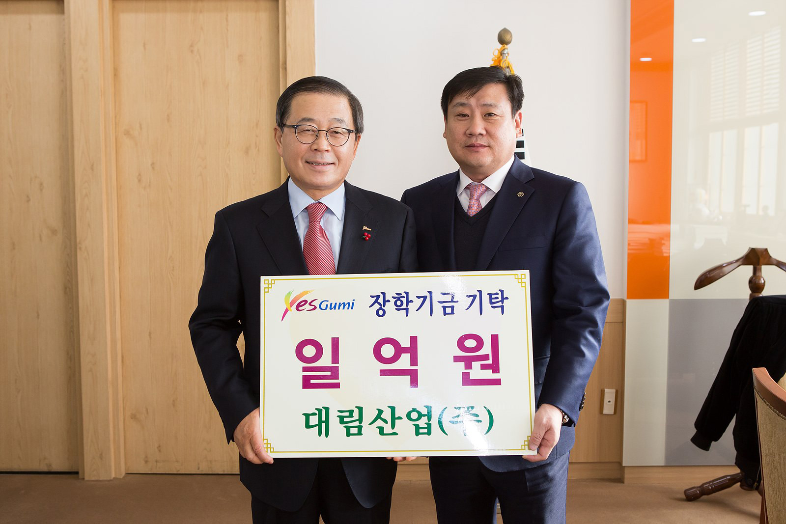 (재)구미시장학재단(이사장 남유진)은 12월 5일 구미시청 1층 국제통상협력실에서 대림산업(주) 1억 원, (주)엠소닉에서 1천만 원의 장학기금을 각각 기탁하는 뜻 깊은 자리를 가졌다.