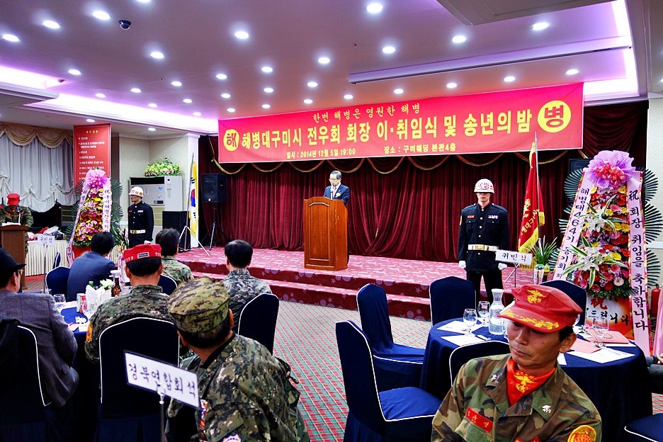 해병대 구미시전우회(회장 최병섭)는 12월 5일 구미웨딩에서 남유진 시장, 김익수 시의회 의장, 윤창욱 도의회 부의장, 김상조 시의원, 김정곤 시의원 등 해병대전우회 가족 500명이 참석한 가운데 '제17대 회장 이ㆍ취임식 및 2014 송년의 밤' 행사를 개최했다.