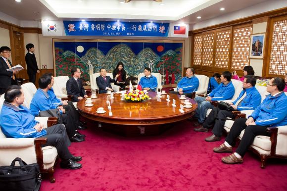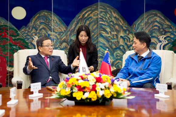 남유진 구미시장은 12월 8일 구미시를 방문한 대만 쭝리(中壢)시 루밍저(魯明哲)시장 일행을 접견하고 양 도시간 우의증진을 위한 협력방안을 논의했다.