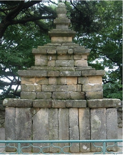 각 층단은 기단부 갑석과 같이 네 귀에 장대석을 배치하고 그 사이를 몇장의 장방형 석제로 결구하였고, 그 위에 2층의 층단을 놓았는데 그 층단은 상하층 동면이 같이 4매석으로 구성되었으며 남면은 하층이 5매석, 상층은 4매석이다.