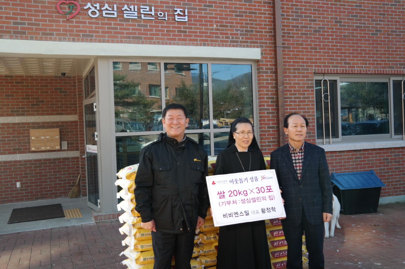 수출용 전선 보빈(전선을 감는 통) 전문생산업체인 (주)비비앤스틸 황정학 대표가 12월 8일 선산읍에 소재한 노인양로 시설인 성심 셀린의 집(원장 박현선)을 찾아 쌀20Kg, 30포대를 기탁했다.