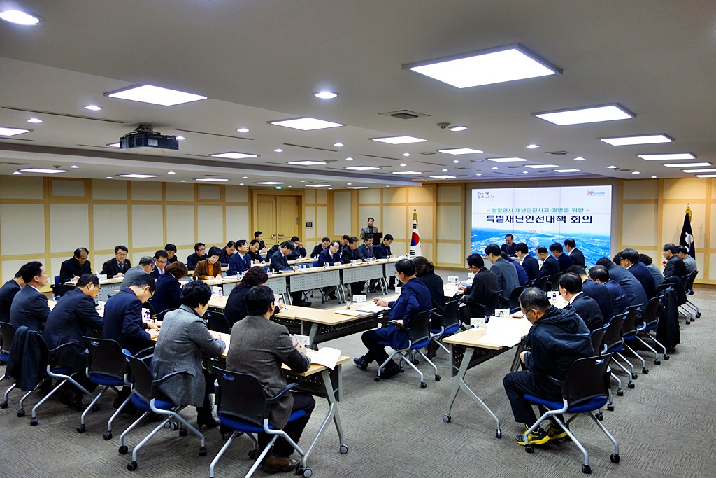 구미시(시장 남유진)는 12월 9일 시청 3층 상황실에서 실ㆍ과ㆍ소장 및 읍ㆍ면ㆍ동장 50명이 참석한 가운데 연말연시 특별재난안전대책회의를 개최, 최종원 부시장을 단장으로 하는 특별재난안전대책단을 구성해 입체적 활동에 돌입했다.