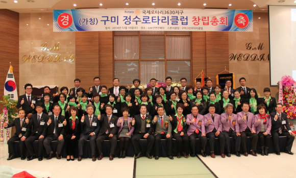국제로타리 3630지구 (가칭)구미정수로타리클럽(초대회장 중산 강호원) 창립총회가 12월 10일 구미 GM 웨딩에서 만재 문상현 국제로타리 3630지구 총재, 도ㆍ시의원, 각 기관단체장을 비롯해 로타리 회장단 및 회원들이 대거 참석한 가운데 성대하게 개최됐다.