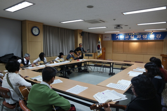 도량동(동장 최현도)은 12월 15일 지난 8월부터 4개월간 운영되었던 행복학습센터 기타교실 수강생들이 모인 가운데 기타교실 종강식을 개최했다.