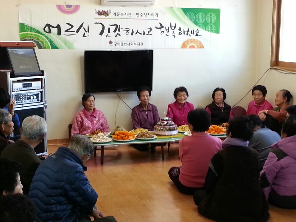 구미종합사회복지관(관장 정석수) 주관으로 진행된 행사에서 마을의 최고령자인 구순태 할머니(89세)는 "많은 사람들이 신경을 써줘서 너무 기쁘고 고맙다"며 감사의 인사를 전했고 함께한 주민들은 어르신들이 오래 오래 건강하시고 행복하시길 기원했다.