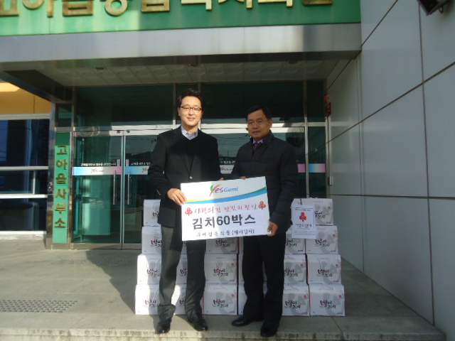 구미협동식품(대표 문동환)은 12월 23일 홀몸노인 및 노인부부세대 등 어렵게 살아가는 60가구에 김장김치 4Kg씩(120만원 상당)을 전달해 한파로 힘들어 하는 어르신들에게 훈훈한 사랑을 실천했다.