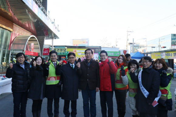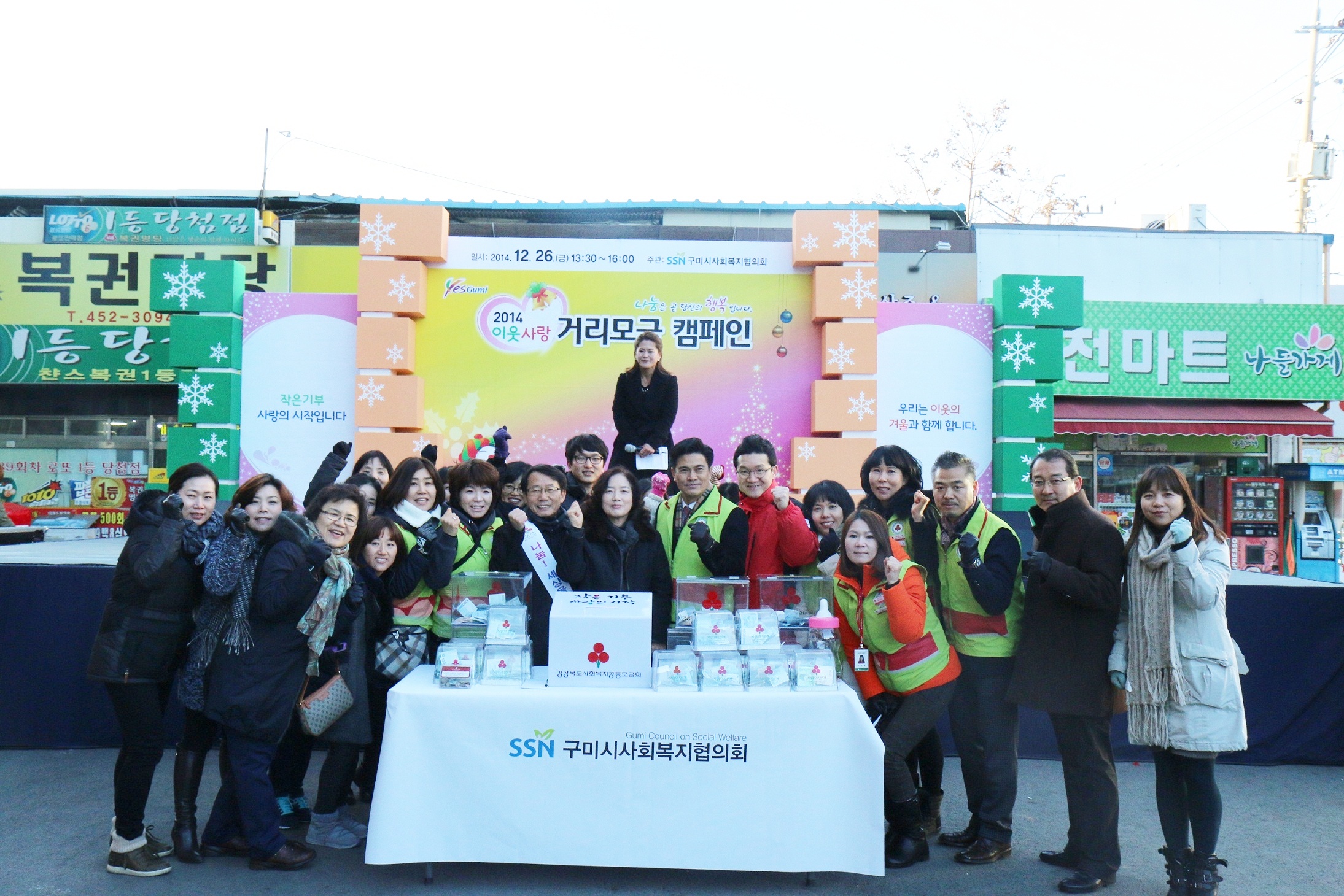 구미시(시장 남유진)와 구미시사회복지협의회(회장 윤영길), 경북사회복지공동모금회(회장 신현수)는 12월 26일 구미역광장에서 사회복지시설 단체, 봉사단 등 300여명이 참여한 가운데 '희망2015 거리모금 캠페인'을 전개했다.