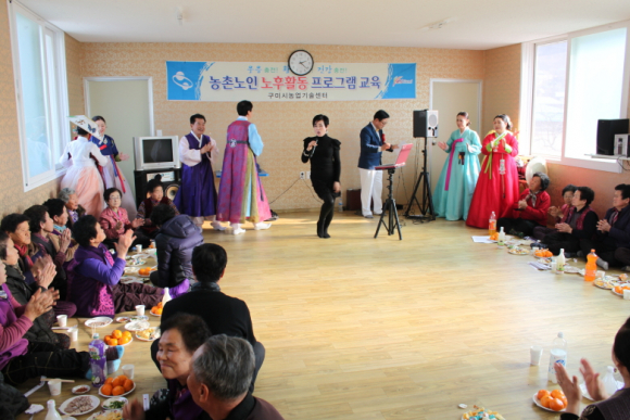 구미시 소리나눔 예술단(단장 김병환)은 단원 10여명과 함께 12월 29일 고아읍 황산리 마을회관 2층에서 어르신들을 위한 위로공연을 가졌다.