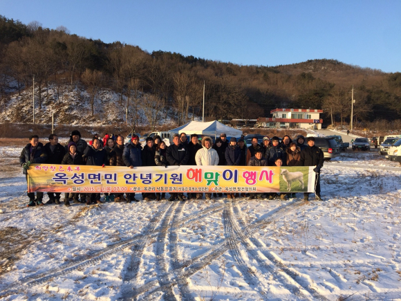 해맞이 행사는 옥성면발전협의회(회장 이용진)가 옥성면민의 화합과 희망찬 을미년 새해를 맞이하고자 주관했으며, 안녕기원제 및 일출 구경, 만세삼창, 신년인사 순으로 진행됐다.