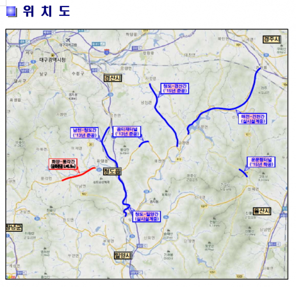 청도군 각남면 신당리에서 화양읍 서상리 구간 4차로 확포장