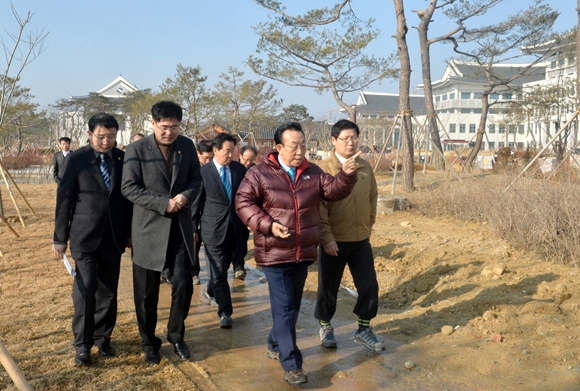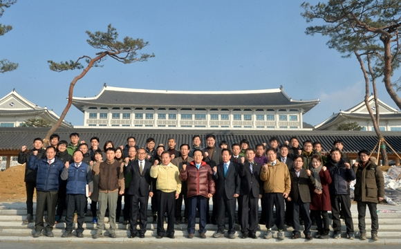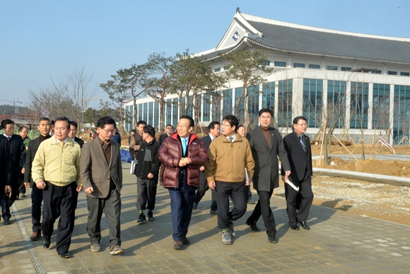 김관용 경상북도지사는 1월 6일 도청 신청사 건설현장 방문해 최대진 도청신도시본부장으로 부터 도청이전신도시의 기반시설 및 정주여건 조성공사 추진상황에 대해 보고를 받은 후 공사현장을 점검했다.