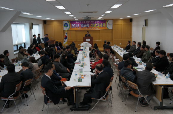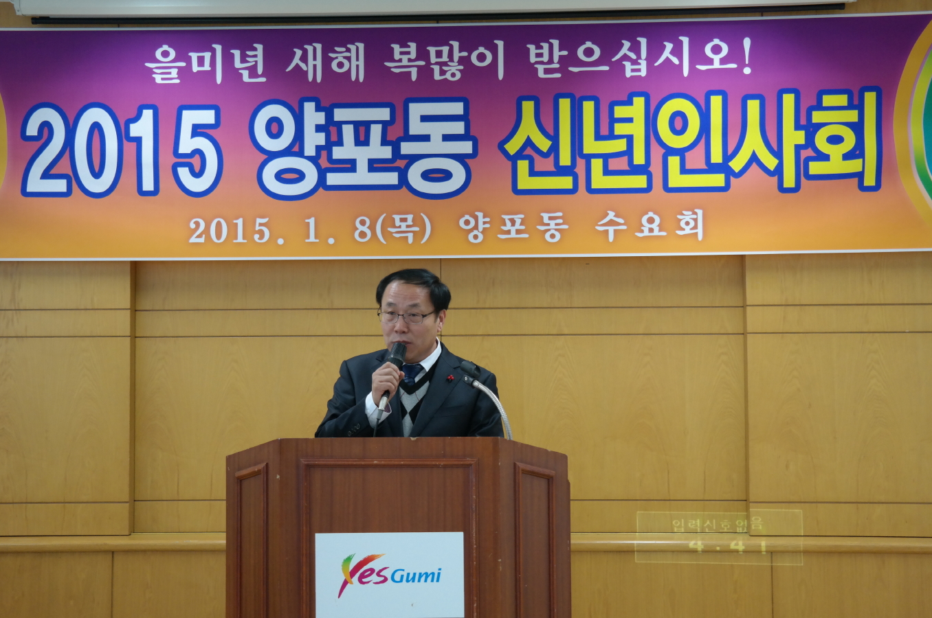 양포동(동장 장도익)은 1월 8일 주민센터 2층회의실에서 이홍희 도의원, 권기만 부의장, 한성희 구미시산업건설위원회 부위원장, 윤종호 시의원을 비롯한 각 기관ㆍ자생단체장과 임원, 지역인사 등 100여명이 참석한 가운데 '2015 양포동 신년인사회' 를 개최했다.