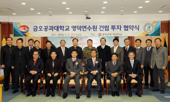 이희진 영덕군수는 “금오공대 연수원이 영덕에 건립되는데 필요한 행정적 지원과 협력을 아끼지 않겠다”며 “관ㆍ학 교류 활성화로 지역경제에도 긍정적인 효과가 있길 기대한다”고 말했다. 금오공대 연수원은 영덕군 영해면 대진리 6,814㎡ 부지에 연면적 611.97㎥ 규모로 신축할 예정이다.