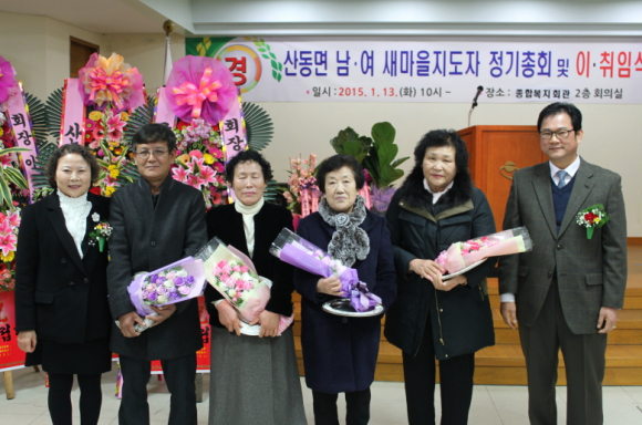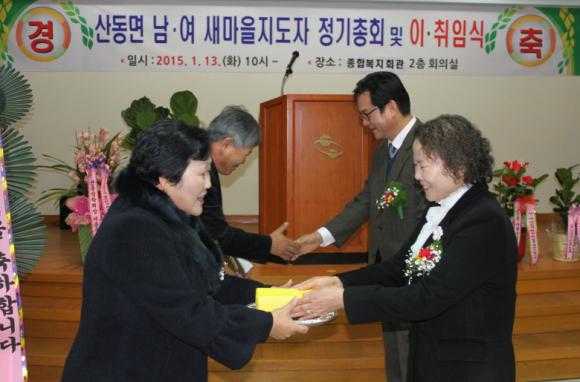 이어 2014년도 사업추진실적 보고 및 세입세출 결산보고, 2015년도 사업계획보고와 함께 새로운 임원인 김춘학 산동면 새마을지도자협의회장, 배남순 산동면새마을부녀회장을 선출했다.