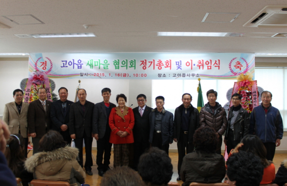 고아읍(읍장 김회식)에서는 1월 16일 읍사무소 2층 회의실에서 고아읍 남ㆍ녀새마을지도자협의회가 주최한 '고아읍새마을협의회 2015년도 정기총회 및 회장 이ㆍ취임식'을 개최했다.