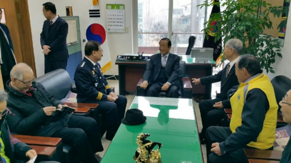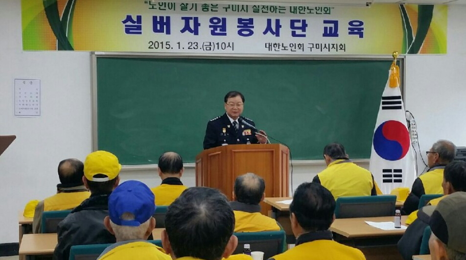 이준식 구미경찰서장은 1월 23일 형곡1동 노인정에서 실버자원봉사단 어르신 50여명을 모시고 강연에 나섰다.