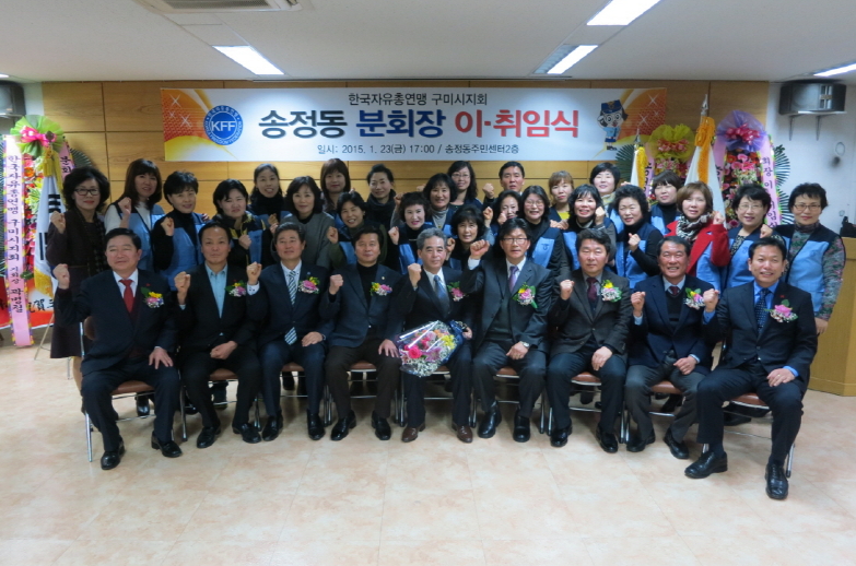 송정동(동장 류시건)은 1월 23 주민센터 2층 회의실에서 심학봉 국회의원, 윤창욱 경상북도의회 부의장, 정하영 기획행정위원장, 박교상ㆍ손홍섭 시의원 및 기관 단체장, 한국자유총연맹 회원을 포함한 100여명이 참석한 가운데 한국자유총연맹 구미시지회 송정동 분회장 이·취임식을 성황리에 개최했다.
