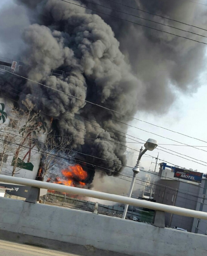 야적장에 있는 PVC 재질의 일부 건설자재와 오피스텔 외벽이 탄 것으로 확인됐다.