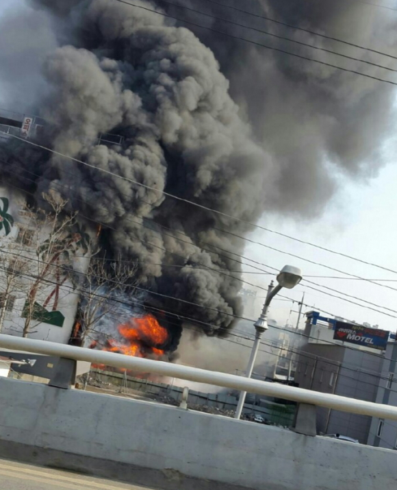 건설자재 야적장, 화재 발생