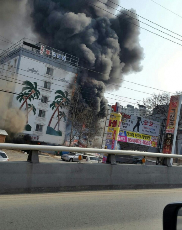 구미시 원평동 자재 야적장과 오피스텔 사이 화재, 2명 치료 중