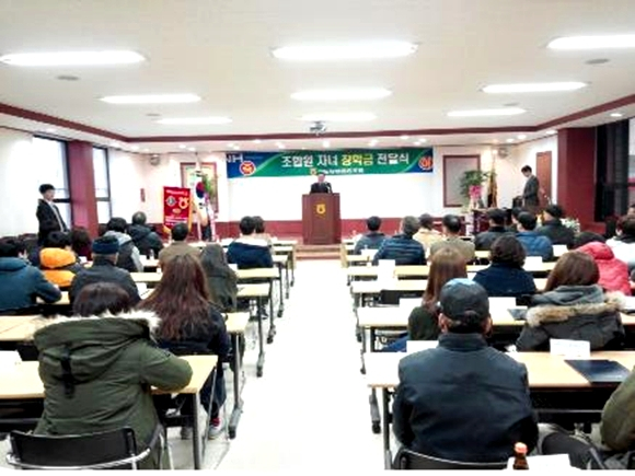 이번 장학금은 조합원 자녀 중 우수한 성적으로 대학에 입학한 총 63명에게 1인당 40만원씩 지급했다.