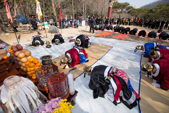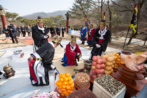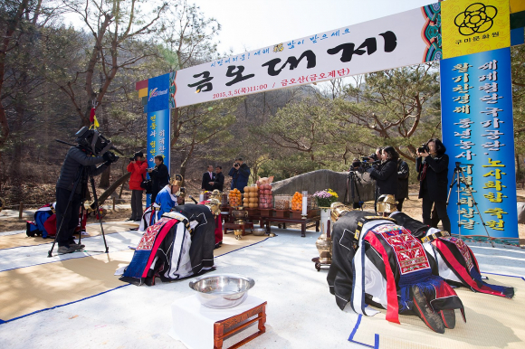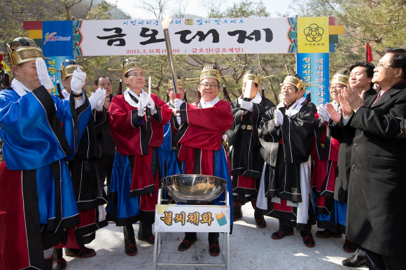 이날 오전 11시 금오산 잔디광장(금오제단)에서 거행한 금오대제는 초헌관에 남유진 구미시장, 아헌관에 김익수 구미시의회 의장, 종헌관에 박은호 구미문화원장이 맡아 고유제를 진행했다.