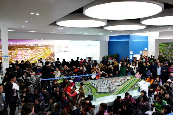 오픈 첫날이 평일인 목요일임에도 불구하고, 수많은 방문객들이 몰려 장사진을 이뤘으며,특히 오픈과 동시에 청약접수를 받아 청약접수 창구가 한 때 혼잡을 이루는 진풍경을 연출하기도 했다.