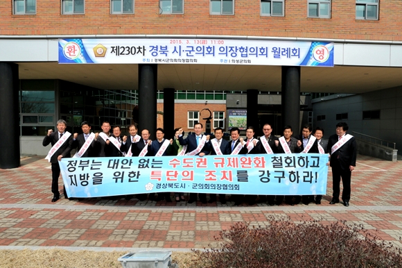 경상북도 시ㆍ군의회 의장협의회는 이날 채택한 결의문에서 ▲수도권 규제완화 시도 중단, ▲수도권과 비수도권의 상생발전을 위한 지역 균형발전 정책의 적극 추진, ▲수도권 규제완화를 규제기요틴 민관합동회의 논의 대상에서 제외할 것을 정부에 요구하고, 정부의 수도권 규제완화 움직임에 270만 경북도민의 역량을 총 결집해 강력히 대응키로 결의했다.