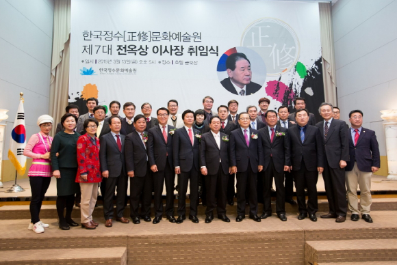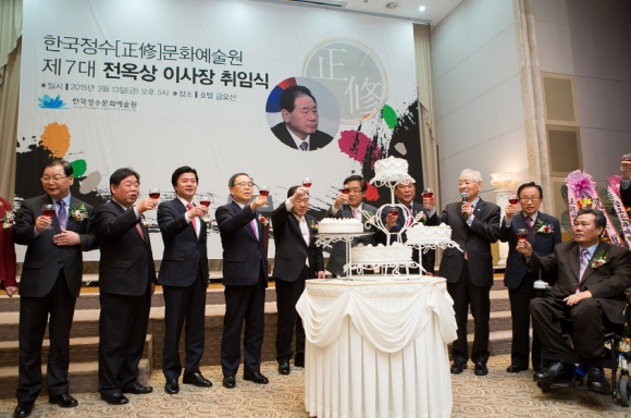 이날 이ㆍ취임식은 경과보고, 제15회 정수대전 시상식 영상 상영, 신재학 직전 이사장에게 공로패 수여, 신임이사 등 임원에게 위촉장 수여, 전옥상 신임 이사장의 취임사, 참석 내빈의 축사 순으로 진행됐다.