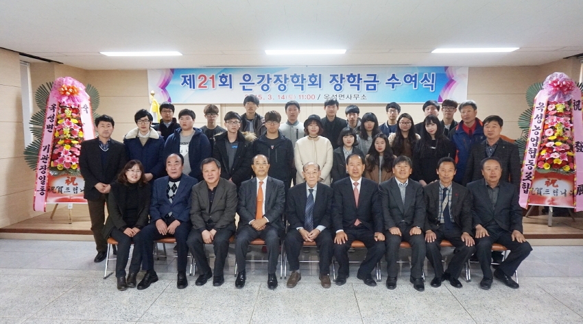 옥성면(면장 이형근)은 3월 14일 옥성면사무소 2층 회의실에서 엄기섭 은강장학회 이사장, 시ㆍ도의원, 관내 기관장, 은강장학회 임원 및 장학생 21명과 학부모 등 약 60여명이 참석한 가운데'제21회 은강장학회 장학금 수여식'을 개최했다.
