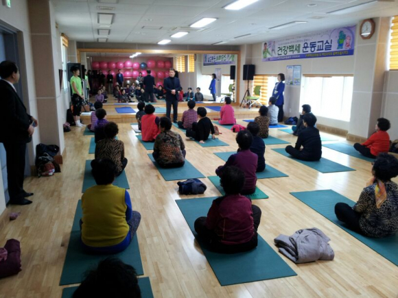 임오동(동장 신정순)은 3월 16일 주민복지센터 3층 다목적문화관에서 40여명의 어르신을 모시고 국민건강보험공단 구미지사 주관으로 노인건강백세 운동교실을 개소했다.