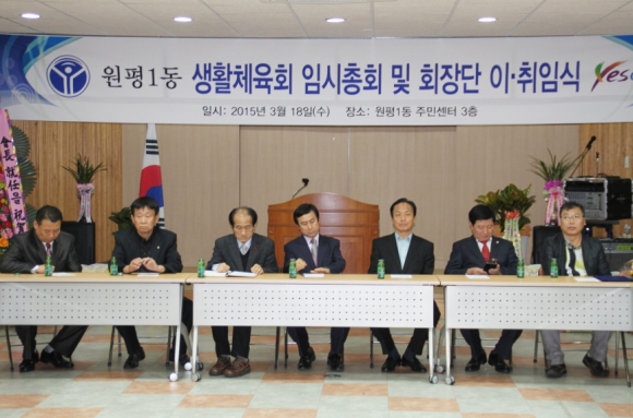 원평1동 생활체육회는 3월 18일 주민센터 3층 회의실에서 임시총회 및 회장단 이ㆍ취임식을 개최했다.
