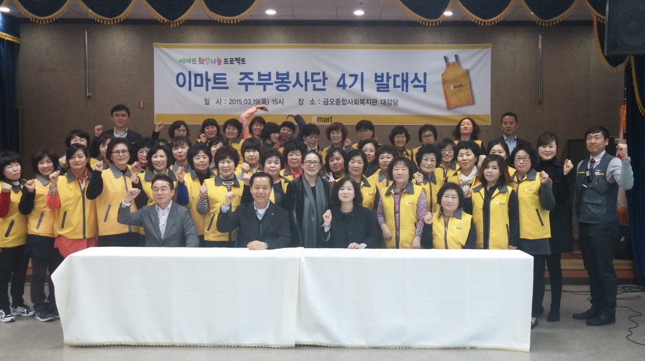 이마트(구미ㆍ동구미점)주부 봉사단은 3월 19일 금오종합사회복지관에서 80명의 신규봉사자 발대식 및 관내 위기가구 지원을 위한 협약식을 갖고 활동에 들어갔다.