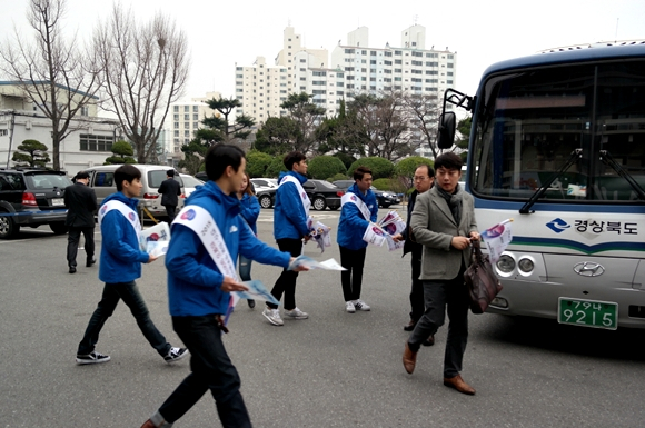 경상북도(도지사 김관용)는 3월 20일 도청 전정에서 경북 대학생 물길원정대와 함께 물포럼 출근길 홍보 캠페인을 전개했다.