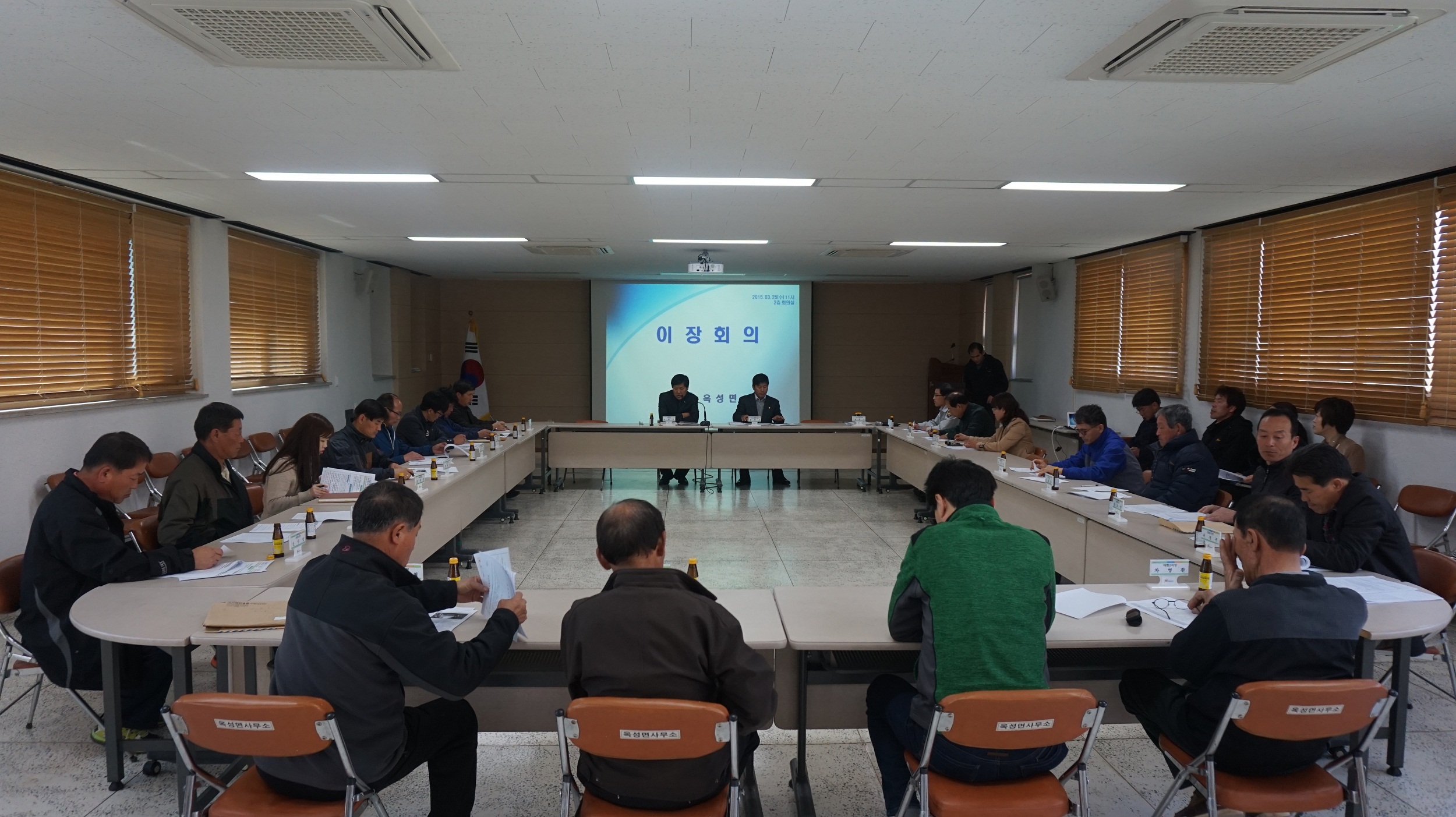옥성면(면장 이형근)은 3월 25일 면사무소 2층 회의실에서 양진오 시의원, 관내 유관기관장 및 이장 등 21명이 참석한 가운데 3월 이장회의를 개최했다.