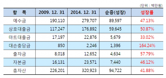 2014년도 결산 결과 총자산 3209억 달성, 2009년대비 41.88% 성장